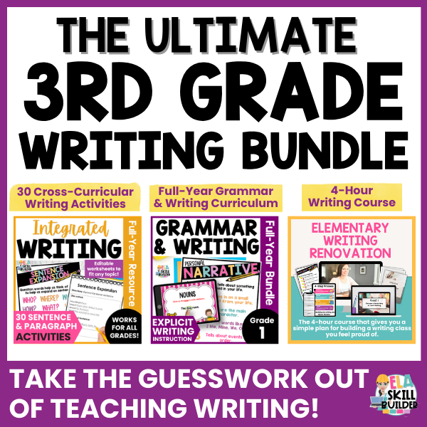 This ultimate 3rd grade writing bundle gives you everything you need to teach grammar and writing with confidence. It takes all the guesswork out of planning and covers every language and writing standard, along with many reading standards. Youโll have clear lessons, helpful models, and ready-to-use activities that make teaching writing feel simple and doable.