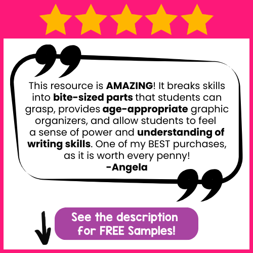 “Everything is clearly laid out with lesson plans, graphic organizers, anchor charts, and tools for narrative, informational, and opinion writing. The scaffolding and model texts build confidence, even for struggling writers. I highly recommend this ready-to-use, comprehensive program.” – Patricia