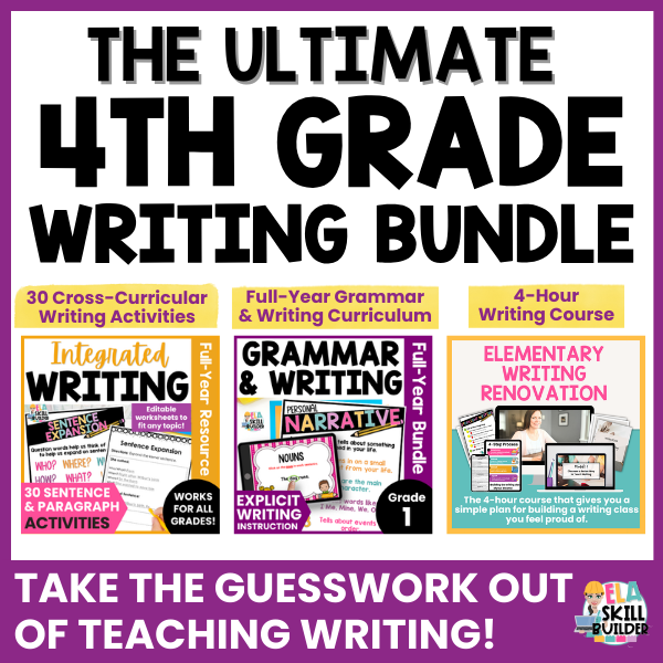 This ultimate 4th grade writing bundle gives you everything you need to teach grammar and writing with confidence. It takes all the guesswork out of planning and covers every language and writing standard, along with many reading standards. Youโll have clear lessons, helpful models, and ready-to-use activities that make teaching writing feel simple and doable.